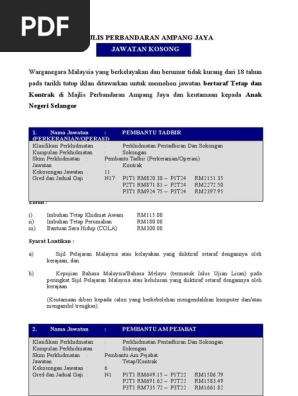Iklan Jawatan Kosong Majlis Perbandaran Ampang Jaya Mpaj Jan 2010 from imgv2-2-f.scribdassets.com Iklan kerja kosong terkini kerajaan yang berasal dari majlis perbandaran selayang. Jawatan kosong di majlis perbandaran ampang jaya (mpaj) 2013 warganegara malaysia yang berkelayakan dan berumur tidak kurang dari 18 tahun pada tarikh tutup iklan ditawarkan untuk memohon jawatan bertaraf tetap/kontrak di majlis perbandaran ampang jaya dan keutamaan. Jawatan kosong majlis perbandaran ampang jaya. Use your skills to benefit the local. Iklan kerja kosong kerajaan & jawatan kosong terkini kerajaan, spa & swasta. Permohonan jawatan kosong di majlis perbandaran ampang jaya (mpaj) dialukan memohon dan mempelawa kepada warganegara malaysia yang berkelayakan dan berumur tidak kurang dari 18 tahun pada tarikh tutup iklan jawatan untuk mengisi kekosongan jawatan tetap / kontrak seperti berikut Jawatan kosong majlis bandaraya johor baru. Tetapi beberapa tahun kemudian kerajaan negeri selangor.